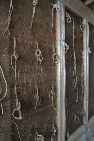 壁が割れずしっかりつないでおくために藁を切った「切りスサ」を土に練り込んでいるので土の中に藁が見えています。