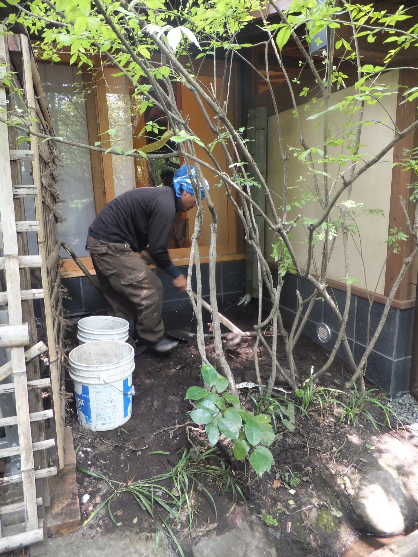 今日は、遊びに来たわけではなく、瓦敷のお庭の作業をしにいきました。